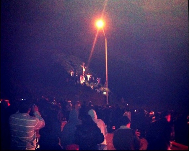 Anyone catch this on film? Good Friday is the day it occurs each year. I happened across it and thought it was a movie being made, so been doing a search for a crucifixion movie, to no avail, of course. Anyone have any other details, I would love to hear them, or pictures, movies. I plan to attend next year to see this event. What church hosts this, if anyone knows?