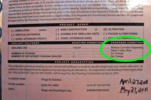 We received a permit application the other day for a new Cannabis club near Mission St. and Precita. (3139 Mission Street to be exact). And to be even more specific, they want to open a “coffee shop/cannabis dispensary.” It will be directly across the street from Roccapulco, Nap’s and El Rio.