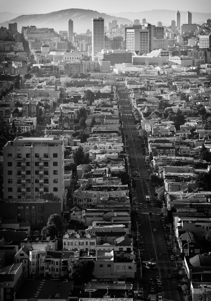 There are plenty of photos floating around the Interwebs that capture the view from Bernal Hill, looking north down South Van Ness. There’s also a really good reason for this: It’s an awesome view that comes in a lot of different flavors, depending on each photographers’ mixture of light, lens, and perspective.