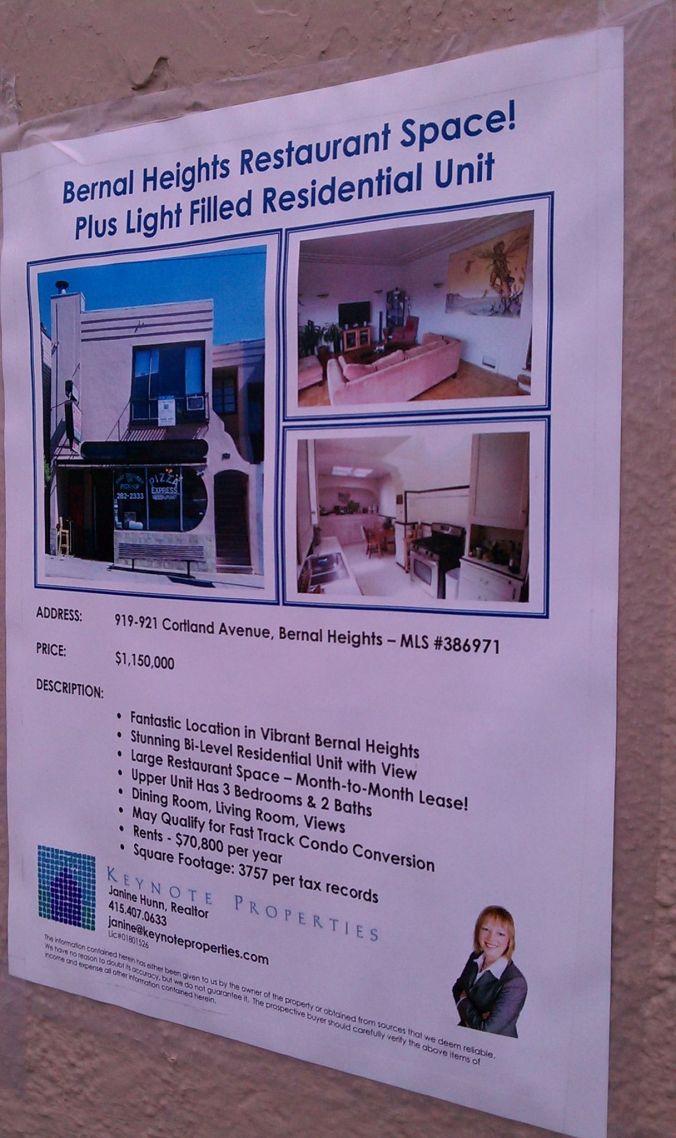 Reader Angel (aka @TheAnorexicSumo) snapped this photo for us; it’s a property listing for 919-921 Cortland, advertising both the residential unit upstairs and the restaurant space downstair, with a “month-to-month lease.” (Online listing here.) Thing is, however… that restaurant space is currently occupied by Pizza Express. So does that mean Pizza Express will soon face extinction?