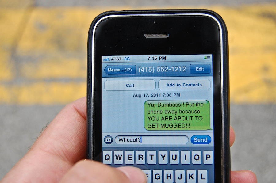 What amazes me even more than the people walking around with iPhones yakking away in a completely ignorant state, are the people doing that while RIDING THEIR BIKES DOWN THE STREET. So they create a hazard for us all, and also have the bullseye on their backs. I’m grateful for you guys @ Bernalwood for spreading the word on how NOT to become a target for the lowlife gangbangers that inhibit the lowlands down the hill and prey upon the rest of us.