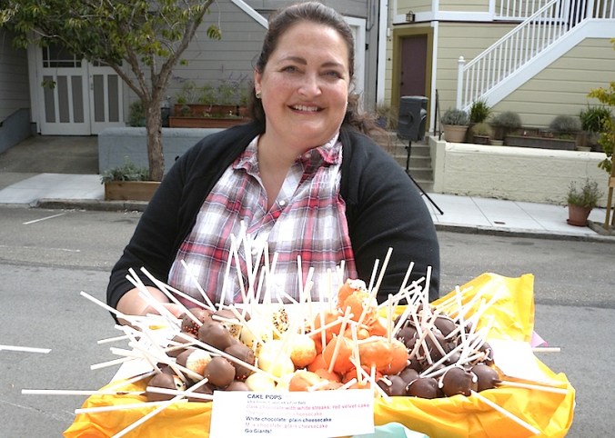Photo above of Gillian with 2010 Bake-Off winner, Giant-themed cake pops. The competition is fierce for the bakers and very tasty for neighborhood judges.