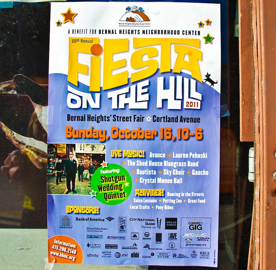 Fiesta on the Hill is a community based, high-profile and energetic Festival with an attendance of over 20,000 friends and neighbors from San Francisco‘s Bernal Heights area, neighboring communities and the greater Bay Area. The event is in its 22nd year and continues to grow.