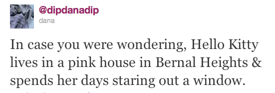 Sounds very glamorous. Since Hello Kitty doesn’t have a mouth, we can’t read her lips. But listen carefully, and I think you’ll hear her say, “Rosebud.”