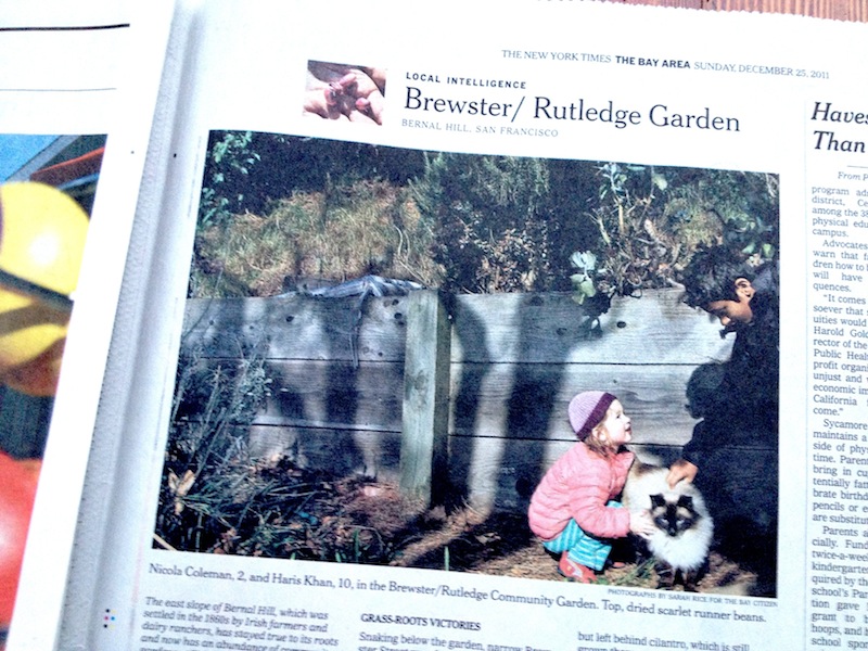 In the Bay Area print edition of the New York Times on Christmas Day, Bernal Heights got another shout out, this time for the semi-secret Dogpatch-Miller Garden on the east side.