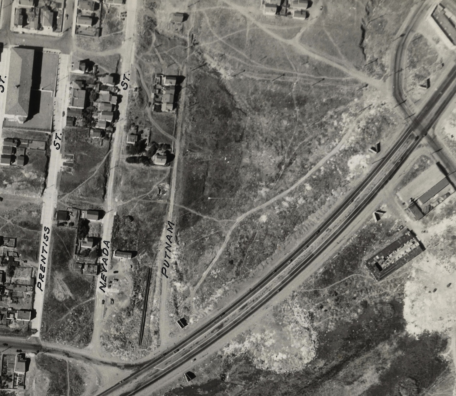 In the southeast, we see the overgrown site that would become the Alemany Farmer’s Market during the 1940s: