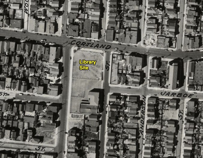 Over on Cortland, the lot has been cleared to begin construction of the Bernal Heights Branch Library (which was dedicated in October, 1940):