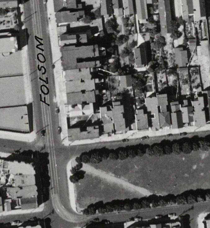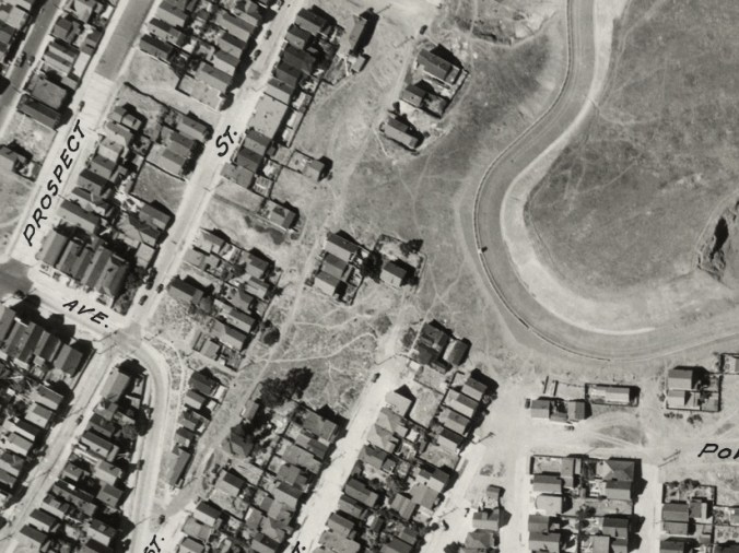 Within that set of pics, there are some very detailed shots taken over Bernal Heights, with crazy-spooky Google Earth-like resolution. The detail is stunning. So strap in to your seat, and let’s tour some Bernal Heights highlights, way back in 1938, shall we?