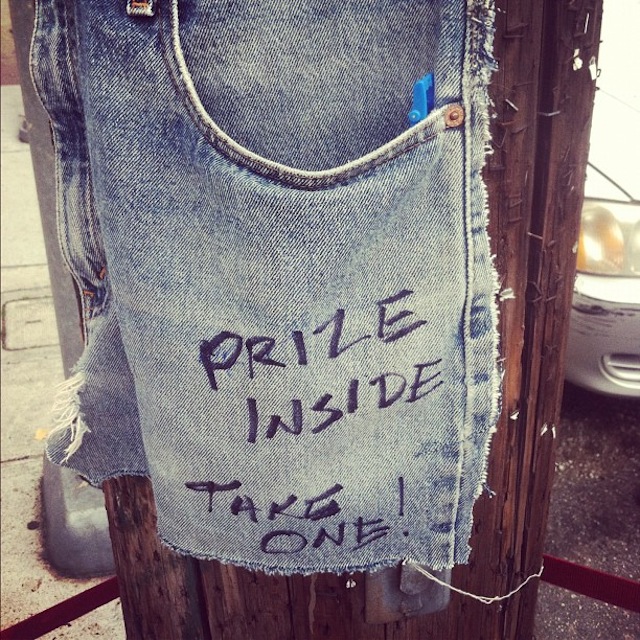 Laurel eyed this handy “Prize Pocket” stapled to a pole on Cortland at Andover. And what did she find when she reached inside?