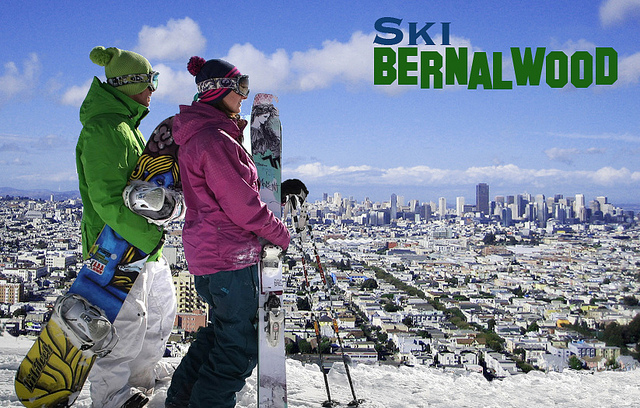 Fortunately, we have no such problems here in Bernal Heights. After the epic snowfall last week, followed by the bluebird skies last weekend, conditions at Ski Bernalwood have never been better. We’ve got at 48″ base with powder or packed powder on 100 percent of our trails, and the forecast calls for continued sun and fun throughout the week.