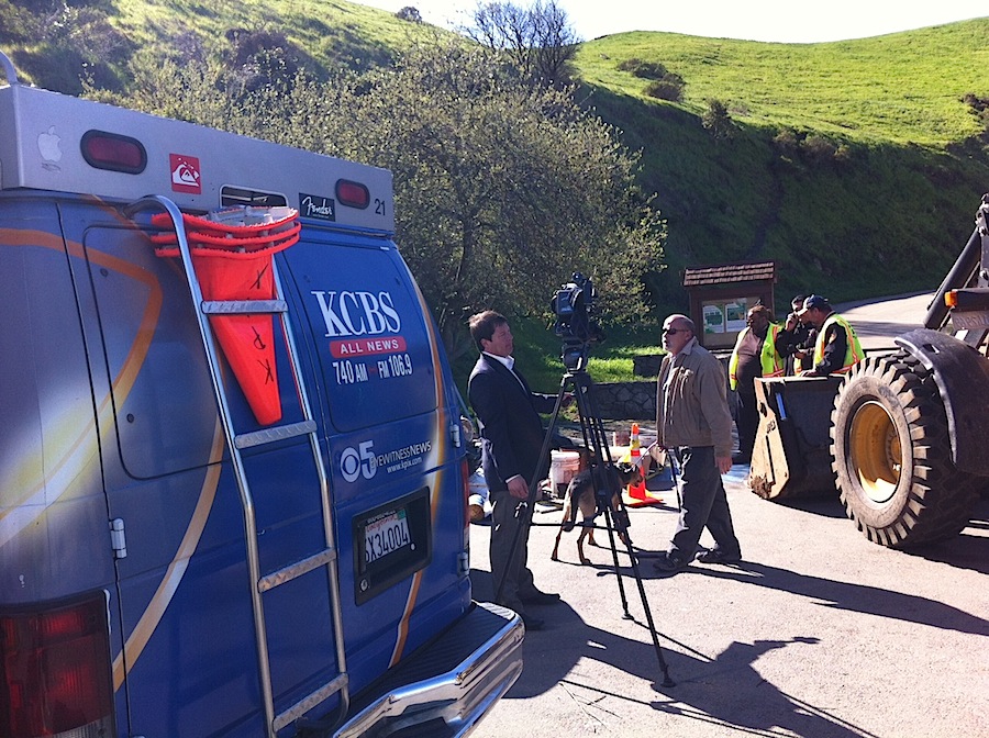 The TV people from CBS5 Eyewitness News saw the Bernalwood story this week about the problem we face with sleazy contractors and other forms of human lowlife dumping huge piles of trash at the foot of Bernal Hill. CBS5 sent a crew over to do a story about it, and along the way that prompted The City to clean up the mess ASAP. (Thank you, DPW!)
