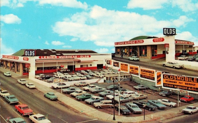 At the time the photo was taken, we’re rather certain that Lesher-Muirhead was owned at least in part by Edgar J. Fleck, a German who fled his native land for the United States before World War II. We’ve yet to find out when he bought into the dealership, but according to his obituary in the San Francisco Chronicle, by 1974 he held enough control over the dealership to move it away from its location at 1515 South Van Ness Boulevard and into a new facility at 780 Serramonte Boulevard in Colma, south of San Francisco. It was there that the Oldsmobile dealership remained (at some point prior to 1980 renamed Serramonte Oldsmobile) until it was dissolved in 1993 by its then-owner, Tom Price, who appears to still own the Oldsmobile dealership’s successor, Stewart Chevrolet Cadillac. […]
