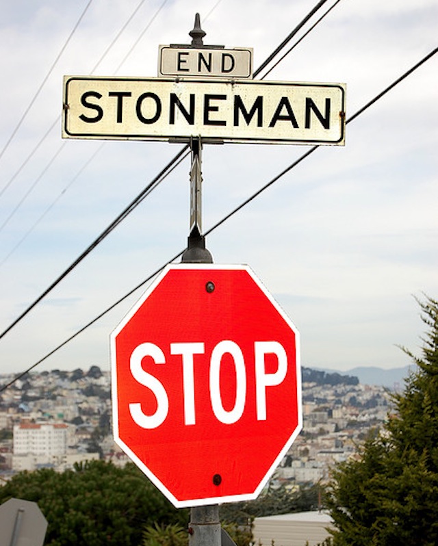 I hadn’t realized that part of the song referred to an actual historical figure, and I immediately wondered if there was any connection between the Stoneman that Levon Helm sang about and the street by the same name in Bernal Heights.