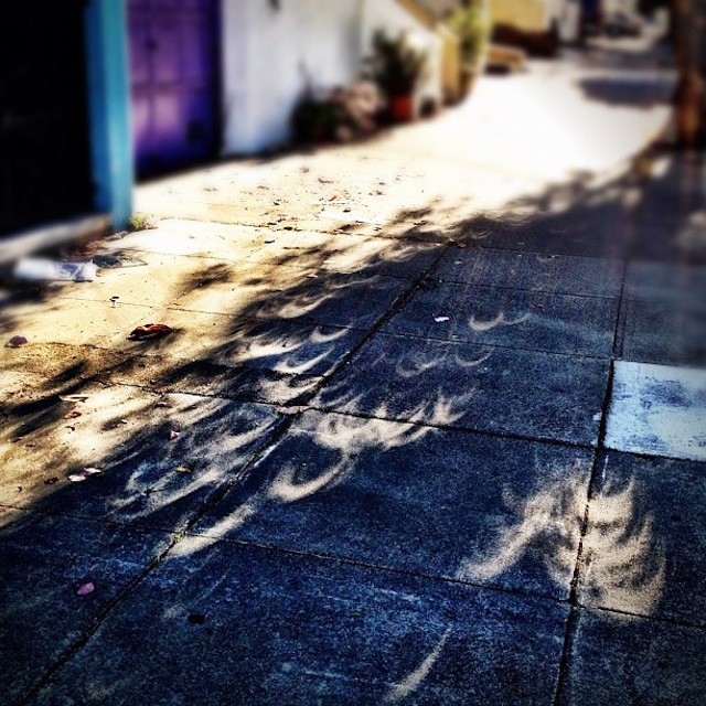 Of course, you didn’t have to be on Bernal Hill to enjoy the show. Here’s a great shot of some wacky eclipse-mutated shadows, taken by Neighbor Isaac: