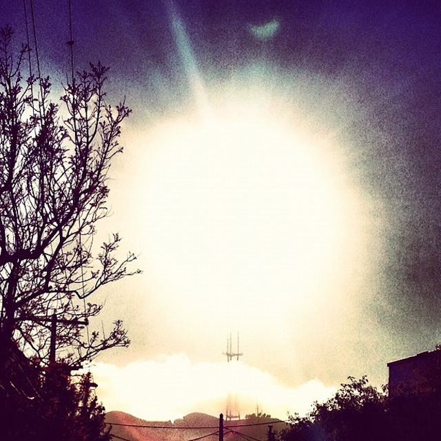 And lastly, here’s a photo of Sutro Tower that I took; notice the crescent-shaped eclipse reflection at the top of the image. Spooky!