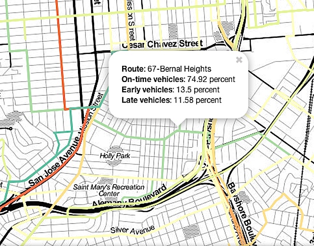 Lately it’s been on a 40 min schedule instead of a 20 min schedule almost every time I’ve tried to take it (even during morning commute hours). And last week when it was running every 40 minutes, I got to the stop plenty early, and it just didn’t show. When it was about 7 minutes away it just disappeared from nextmuni.com. In the past few months I’ve had to take cabs, hitch rides to BART, and walk to the Mission buses more times than I can count. I never had to do that when I first moved to Bernal.