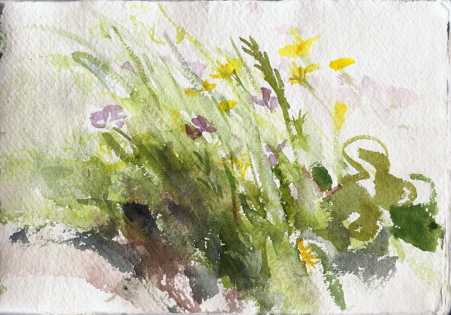 The wind was whipping the flowering weeds into a frenzy and I just had to stop and sketch the wildflowers, even though my nose was dripping and my fingers were numb by the time I was done.