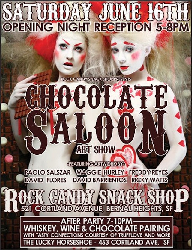 The Rock Candy Snack Shop on Cortland is having an artshow called Chocolate Saloon tomorrow, on Saturday, June 16th, from 5pm-7pm. Whoo hoo!
