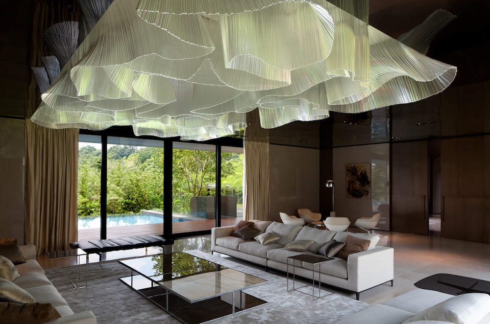 Nikolas Weinstein, who works out of a studio in San Francisco’s Bernal Heights, is locally known for his glass sculptures suspended from the ceiling at the Bar Agricole restaurant. Yet over 90% of his work is installed abroad. With a team of 10 people, Nikolas Weinstein Studios creates architectural-scale works for luxury hotels, commercial spaces, and private residences in places such as Hong Kong, Germany, Tokyo, and Shanghai. The studio recently completed sculptures for the lobby of Frank Gehry’s OPUS residential tower in Hong Kong, the new JW Marriott Hotel in New Delhi, and a private residence in Kuala Lumpur.