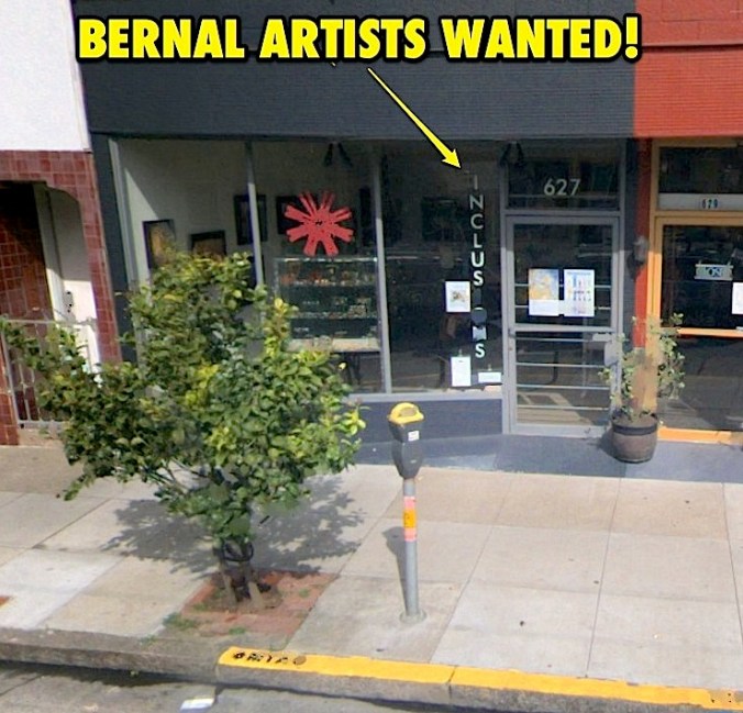 Attention Bernal Heights Artists! The glamorous Inclusions Gallery on Cortland is seeking submissions for their annual “Art From Within Bernal Heights” exhibit that’ll happen in September. The submission deadline is August 24.