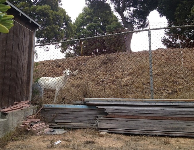My girlfriend and I just moved to the neighborhood, and we’re thrilled to be here. Our backyard borders Holly Reservoir, which we thought was uninhabited. Apparently not! After a bit of research, it seems this guy is a member of SF Water’s brush clearance project [which recently devoured the tall grasses of the Portola District].