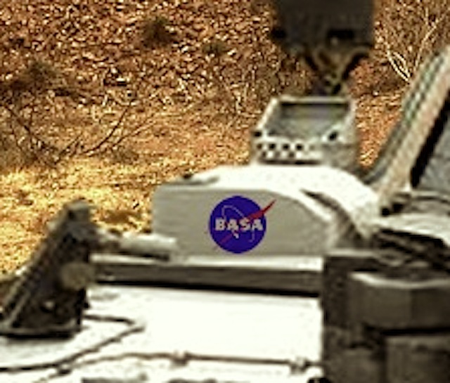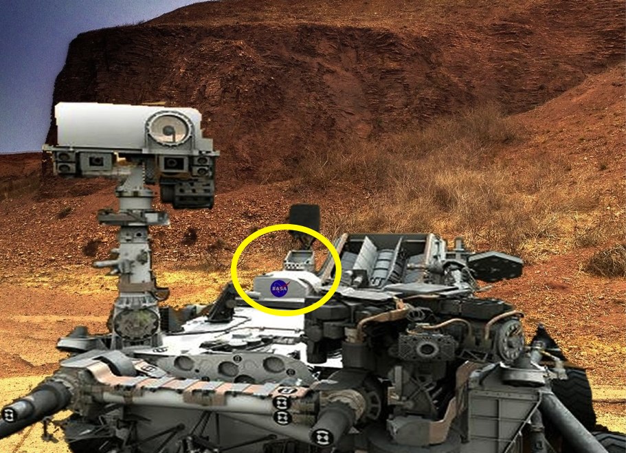 But who would perpetrate such a hoax? And who has the technological capacity to pull it off? As I studied the reconstructed image, I noticed a blue insignia on the rover’s nuclear battery pack: