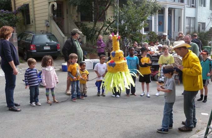 Bhangra Dancers at 1pm. Ten of them! Be a judge in the Bake-Off Contest, Jump in the Bouncy House, Swat a Pinata (if you’re young enough), enjoy food, drink and great company. Be carefree and carfree on the Best Block of Bernal.