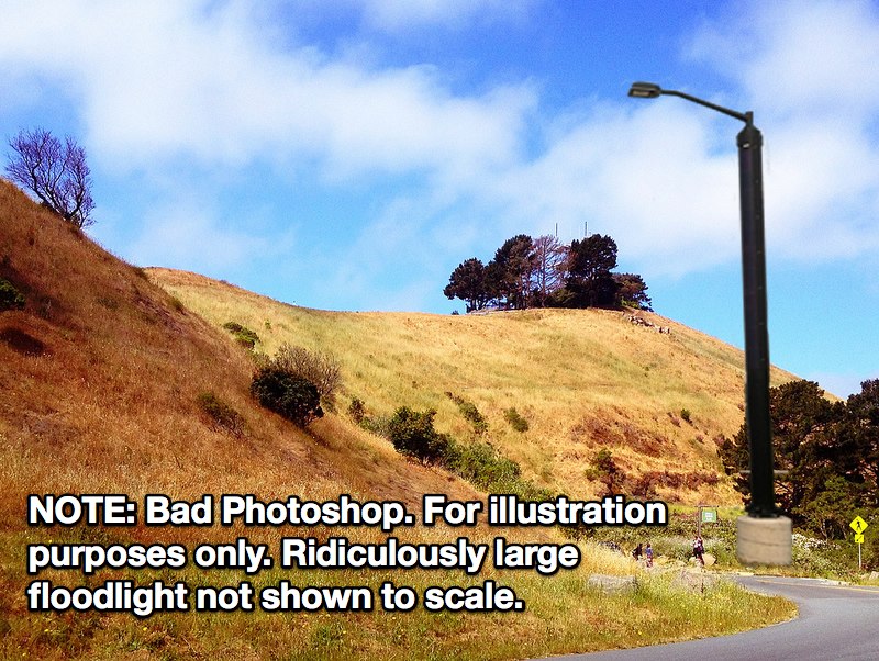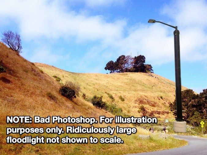 They used to have an extremely annoying floodlight atop the hill and it was just awful. Total light pollution. I’m happy that is gone and extinguished. Please, please lets not pollute the park this this monstrosity.