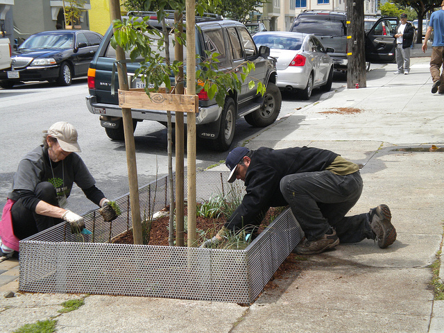 Three cheers for sidewalk gardens. Check out the ones FUF installed earlier this year on Folsom between Precita and Cesar Chavez and Manchester between Bessie and Stoneman. They’re great, and it’s a fun community project!