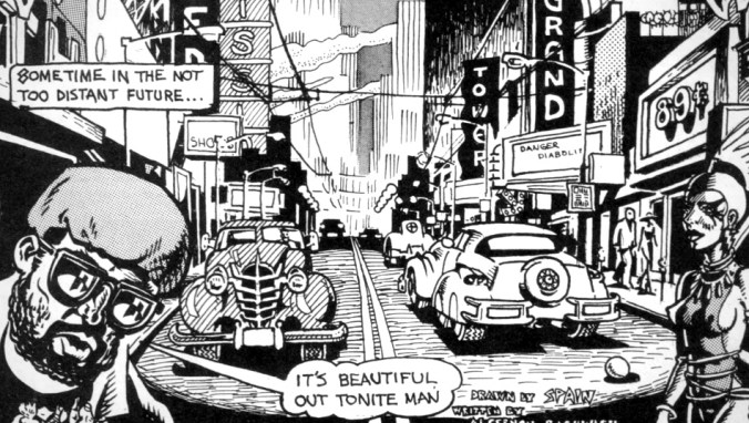 It is with great sadness that I inform you of the passing this morning of Spain Rodriguez. He passed at home with his daughter and wife at his bedside at about 7 this morning. He had been fighting cancer for a long time. He was a wonderful father, husband, and friend. His art challenged, changed and enlightened and entertained us for over five decades. His passing coincided with the penumbra eclipse of the moon, like Spain’s shadow from the outer edge of the art world’s face. Services are pending, please give the family some time.