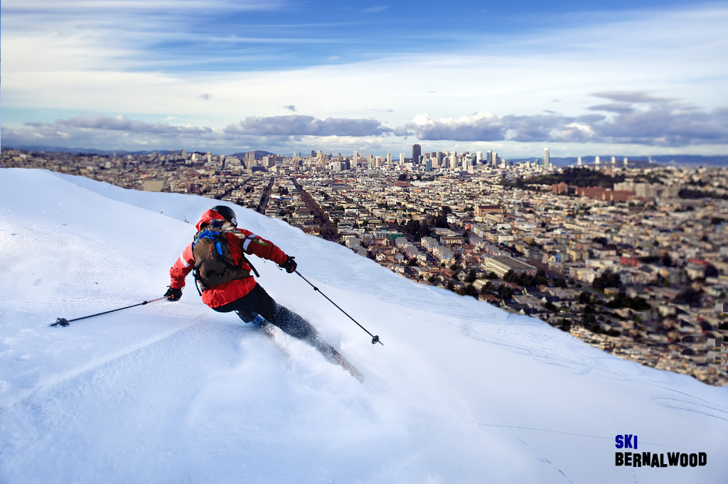 It’s been cold, and it’s been wet, which means conditions have never been better at Ski Bernalwood, San Francisco’s finest wintersports resort destination. Right now we’ve got a 41″ base with powder and packed powder on top, so it’s a great time to strap on your boards and and explore all the terrain we’ve opened up on Bernal Hill.