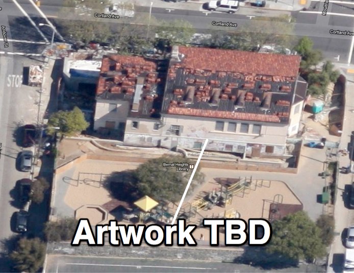 The library task force has chosen Johanna Poethig to create the playground-side artwork. Johanna has a long history with community-focused public art, and she is seeking input from Bernal neighbors via a survey (linked below). The Bernal Library Art Project tells us: