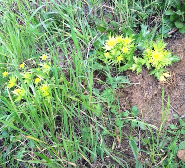 Passersby may not notice these small, low-lying plants that grow on the north side and on the top of Bernal hill. These are footsteps-of-spring, some of the earliest spring flowers. They have been popping up in more locations, but seem to like the rockier spots. Their appearance always make me happy, and their name can tell you why!