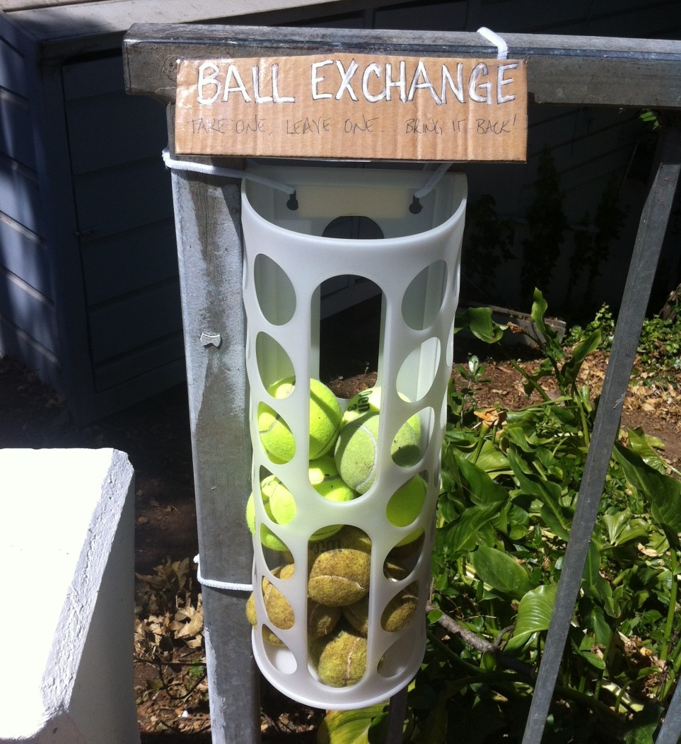 For humans who need a solution for mismatched footwear, the Bernal Bubbles laundromat on Cortland hosts the ever-so useful Bernal Heights Sock Exchange. Now Neighbor Jonathon and Canine Jolene bring word that a similar program has been established for Bernal dogs that need a ball to fetch.