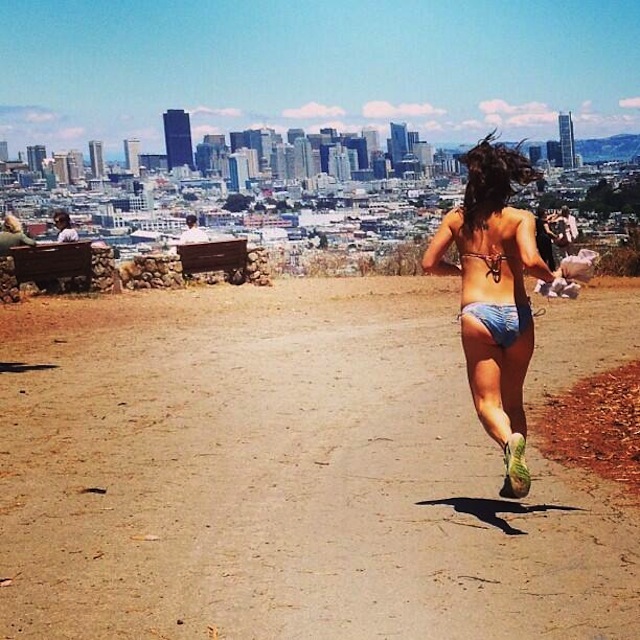 While animal-control experts stalk the wild marmot that has taken refuge in Bernal Heights, an observant neighbor spotted an even more elusive being late yesterday afternoon: The Bikini Jogger!