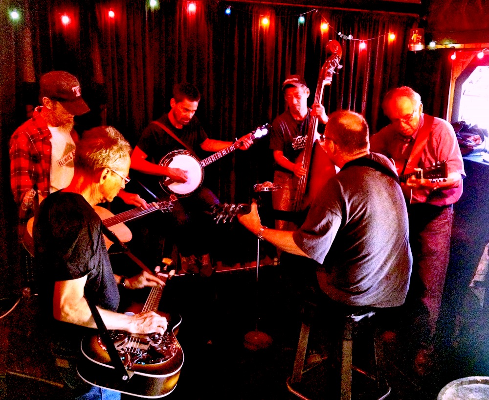 The Bluegrass thing happens every Sunday. Very low-key atmosphere. On Saturdays LH now has some interesting bands playing for tips or a low cover. Sound is pretty good, not too loud.