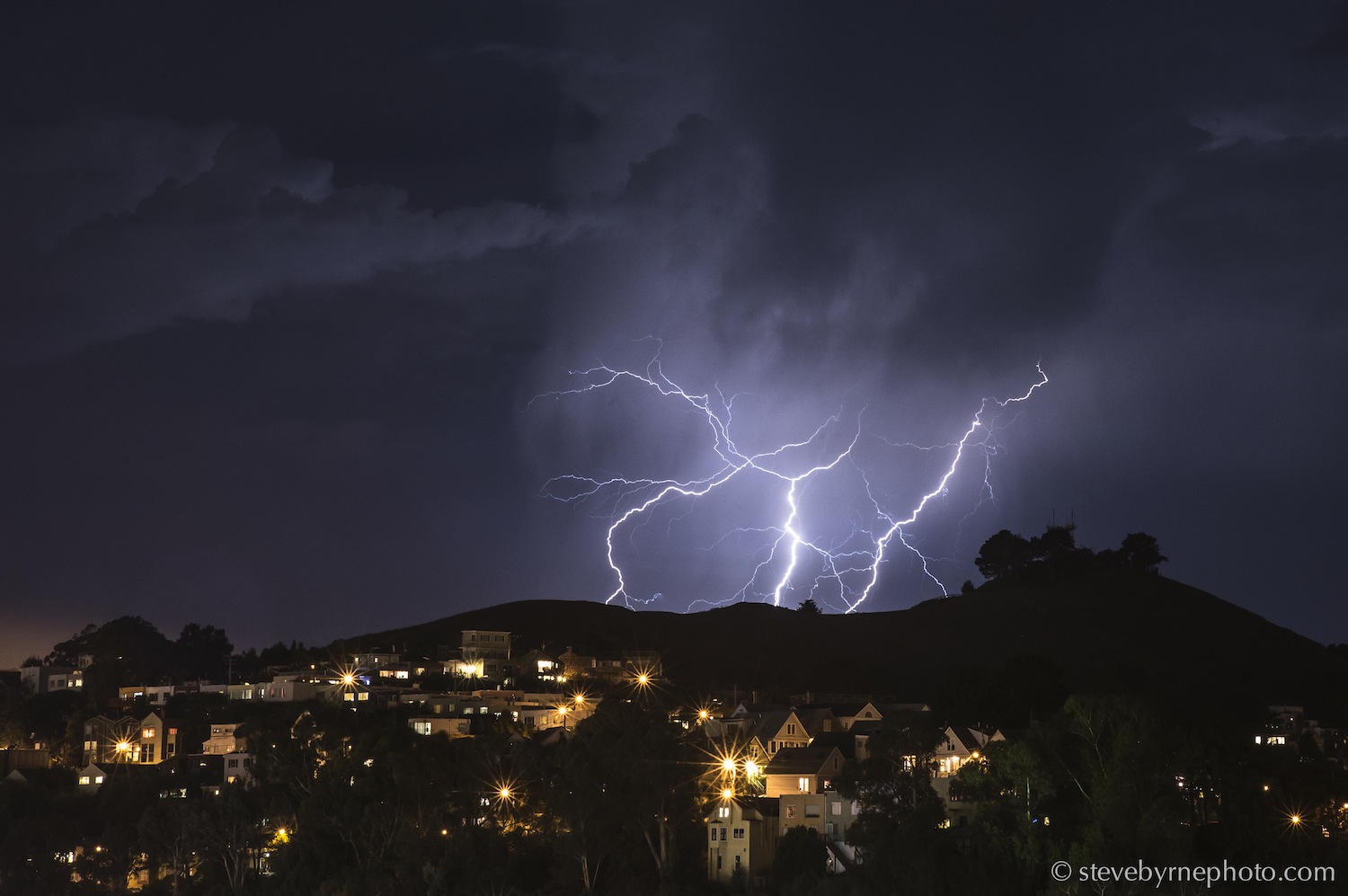 Turns out, we just needed to be patient. San Francisco photographer Steve Byrne just sent us this electrifying image of Bernal taken from Potrero Hill during Monday night’s storm, and it’s fantastic.