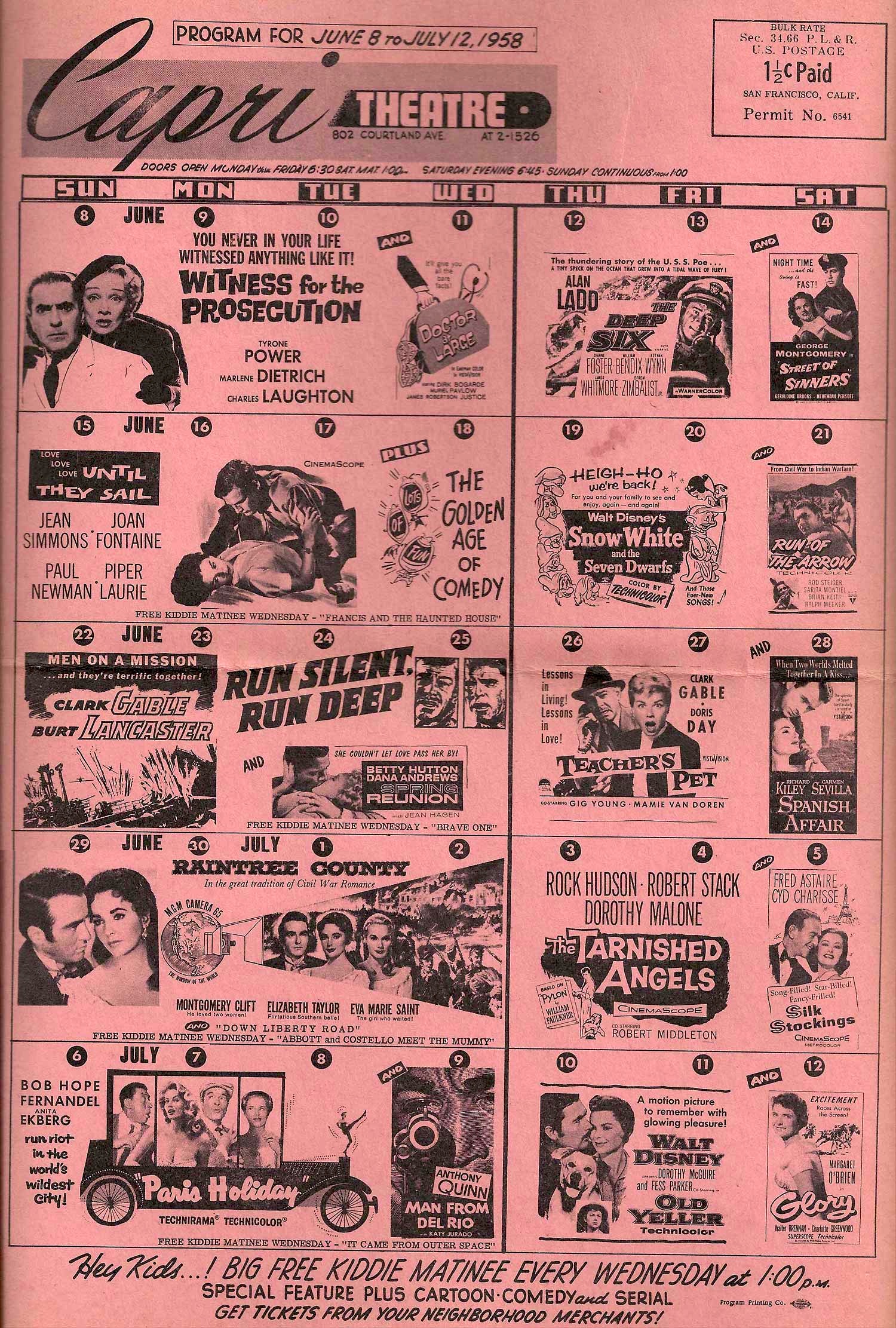 I grew up in Bernal and I remember going to the Capri (during my time it wasn’t a grimy dump) almost every weekend. $0.50 to get in, 2 movies, popcorn, candy, it was the best!. I wish it was still there, especially now that the neighborhood has so many children living here again. It was great having a movie theater in the neighborhood.