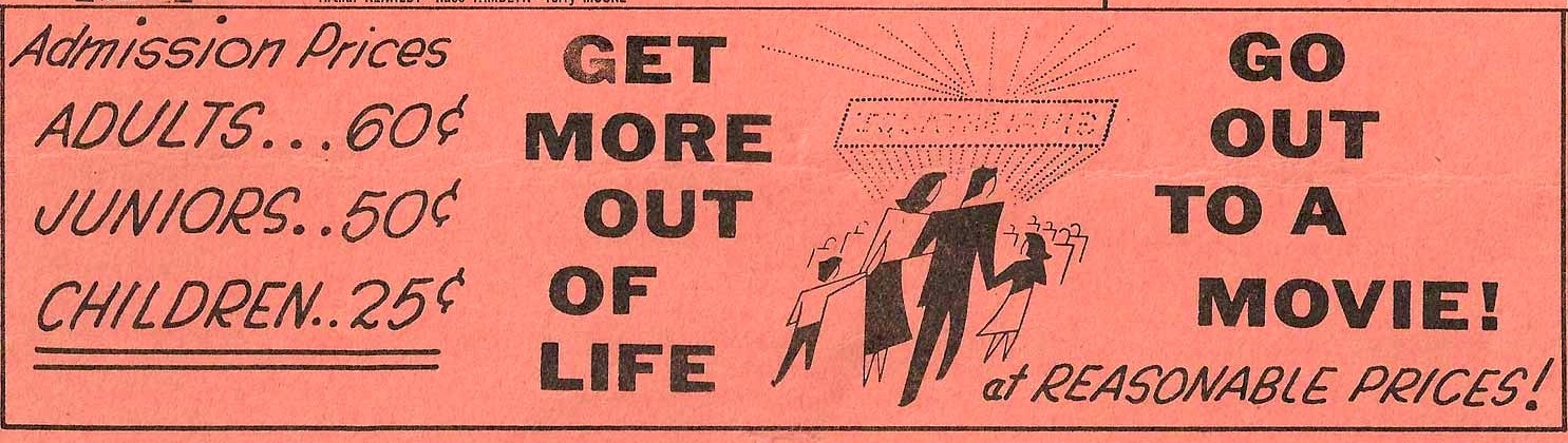It was a time when few had color televisions so seeing a movie, usual a double feature, in color was a big deal, even though most of what they showed at that time had already been shown on TV.