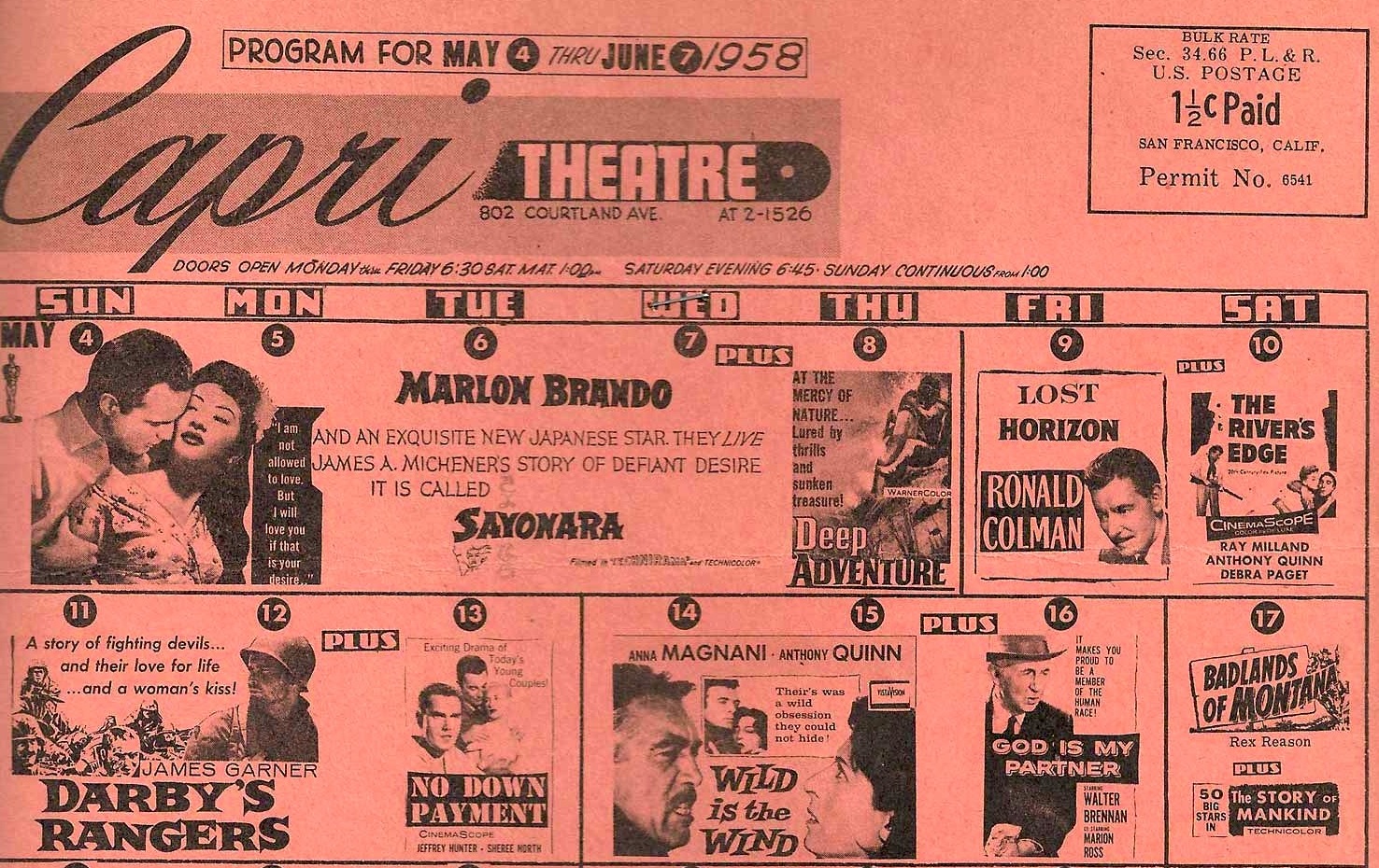 “When I got my first car (in 1956), going to the movies in remote locations was an adventure. And since I lived in the Richmond District (near Geary Blvd. & 21st Avenue), Cortland Avenue definitely fell into that category.