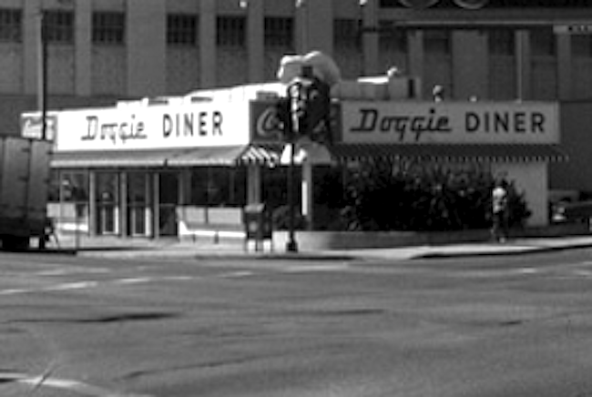 Doggie Diner was started by a family friend, Al Ross. It was really one of the very first fast food restaurants, begun in 1949 in a wedge-shaped storefront at 19th & San Pablo in Oakland. Al saw a lot of late shift sailors hanging around downtown Oakland late at night, so he figured they’d want to eat. All Doggie Diners were 24-hours.
