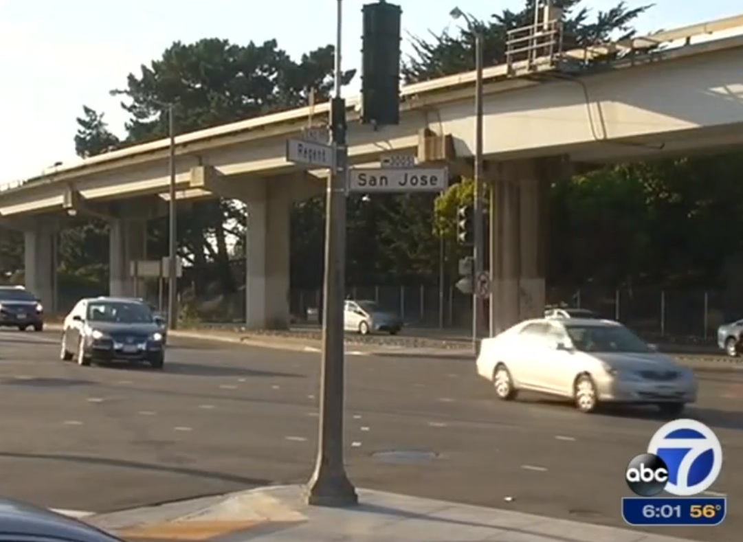 IMAGE: Scene of Jonathan Burnoski’s alleged hit and run, on Mission at Regent, via ABC-7 video