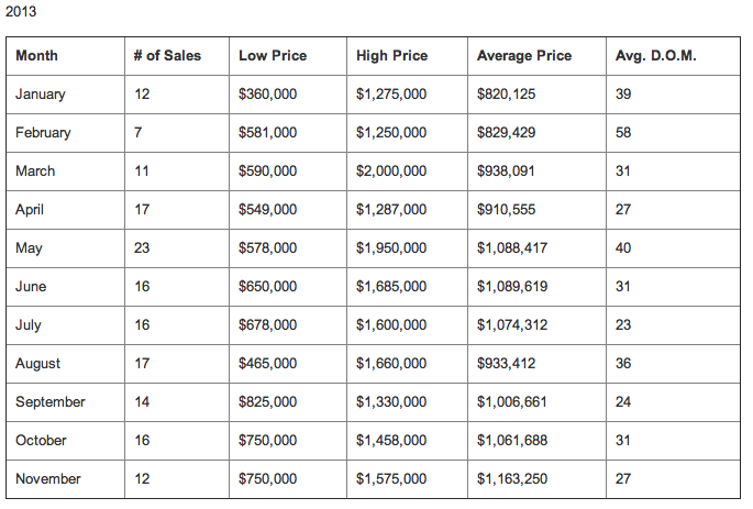Meanwhile, for all you fans of seasonal Year In Review roundups, Downing also links to this monthly summary of 2013 Bernal Heights single-family home sales trends: