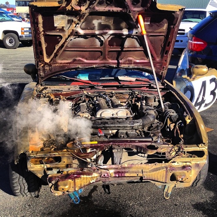 In the end, the head gasket was likely blown, and the head itself might well be warped. These are addressable problems, but the BDR elders decided that it was time to move on. The ex-Molvo was put up for sale, and last week it was purchased by a group of suckers new race team seeking to get a start in the exciting world of 24 Hours of LeMons racing: