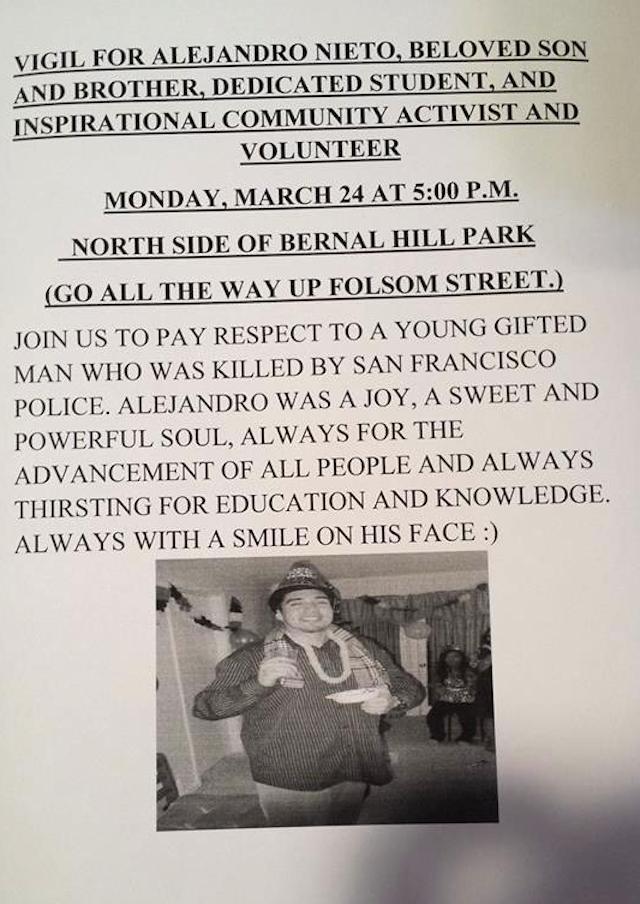 There is still much to learn about what happened to Neighbor Alejandro Nieto, the 28 year-old man who was shot and killed by SFPD officers on Bernal Hill Friday night. But there are some things we already know: Alejandro’s death was a tragedy, and the grief his family and friends feel right now runs very deep.