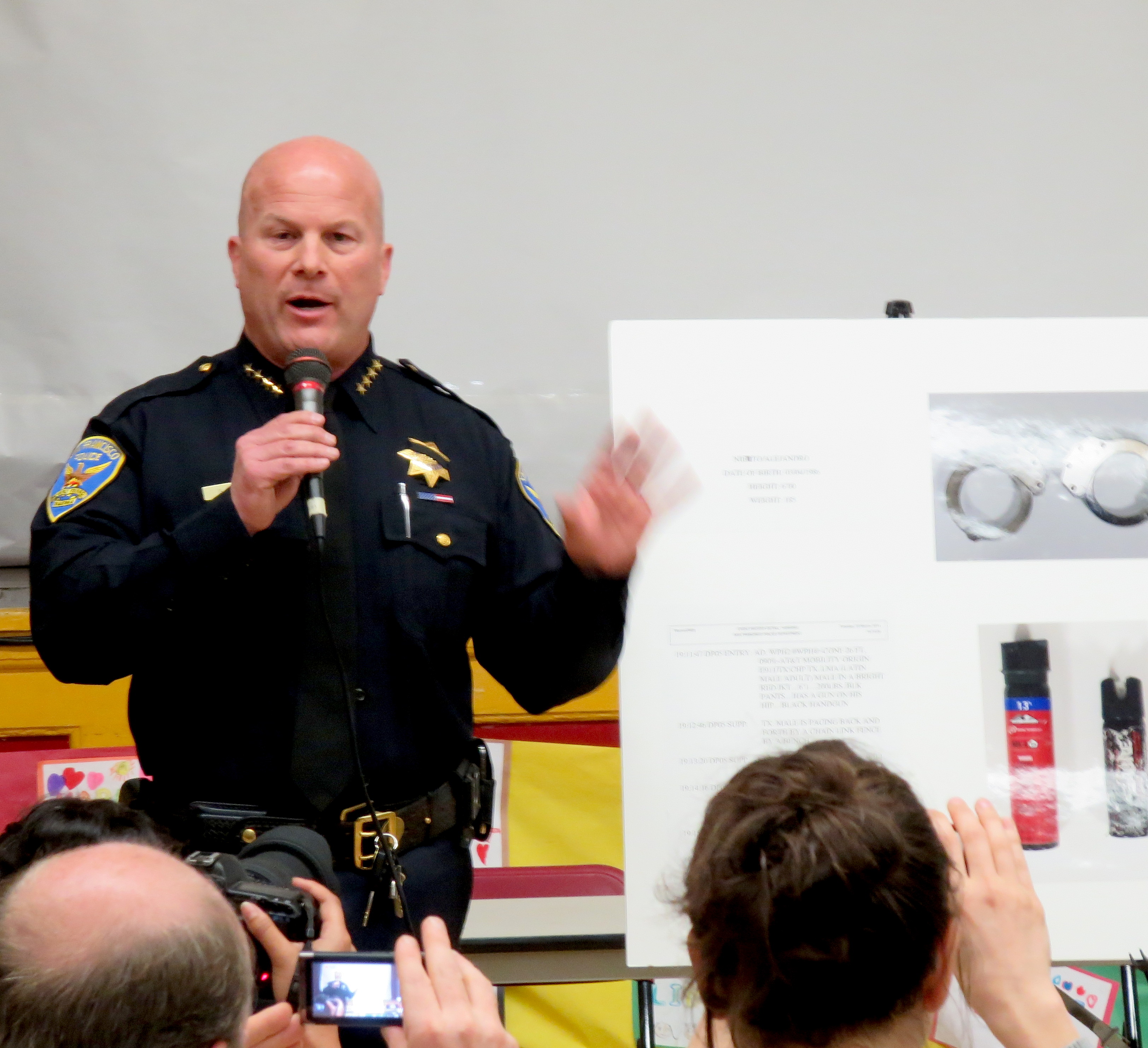 During tonight’s tense community meeting at Leonard Flynn Elementary School, San Francisco Police Chief Greg Suhr released new details about Friday night’s officer-involved shooting death of Bernal Neighbor Alejandro Nieto.