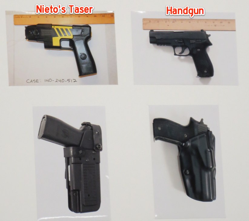 “They asked him to show his hands,” Suhr said. Instead, Nieto told police to show their hands and pointed at them. When officers saw a red laser light emanating from what was later identified as a Taser, Suhr said, they thought a gun was pointing at them and opened fire in “defense of their own lives.”