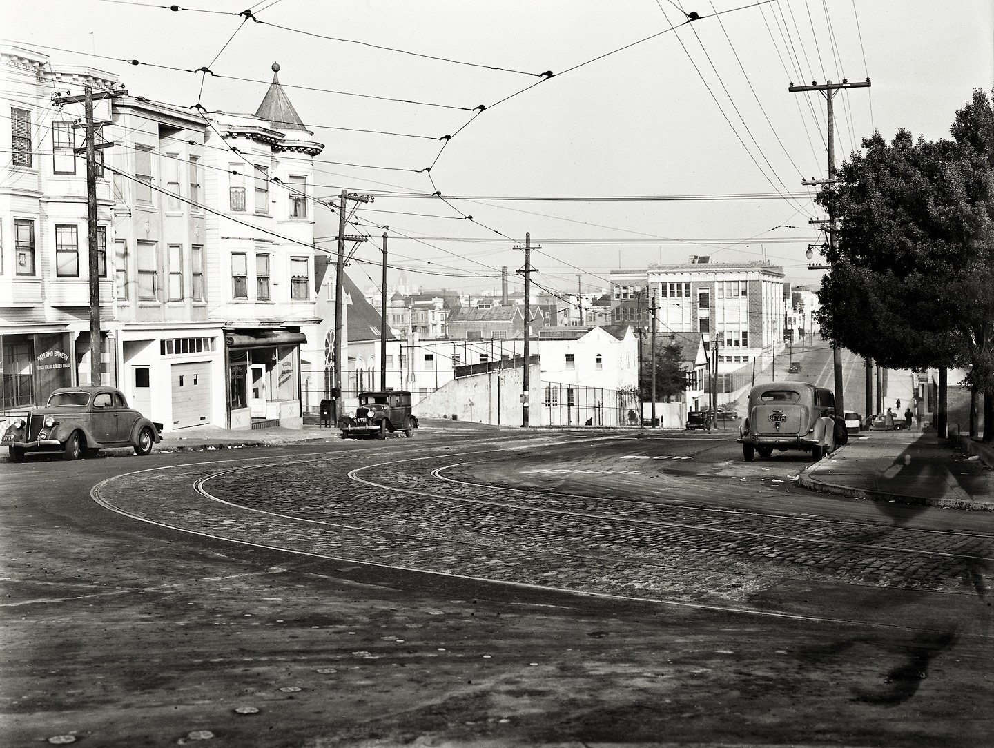 PHOTOS: 1943 photos by SFMTA. 2014 photo by Telstar Logistic. 1942 photo via San Francisco Public Library