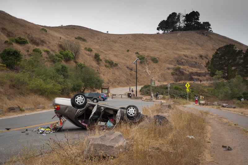 Drama! Bad driving! Vehicular inversion! A suspicion of crime! On Bernal Hill!