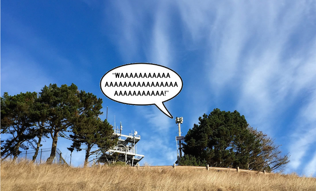 San Francisco’s Outdoor Public Warning System has been in place since 1942, and the system now includes 109 siren towers sprinkled around the City. Here in Bernal, there’s one (strategically) perched on Bernal Hill right next to Sutrito Tower, as well as one atop Leonard Flynn Elementary School in Precitaville.